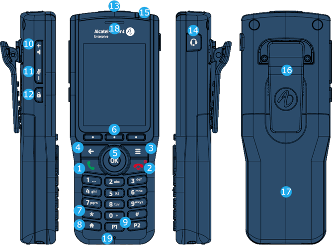 · Clip to hook your phone on your belt. You can remove the clip and use a cover instead (sold separately). |