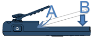 Mettre en place la batterie : · Positionner le côté 'connecteurs' de la batterie comme indiqué sur le dessin (A). · Terminer l'installation de la batterie dans son logement en appuyant tel que décrit sur le dessin (B). |