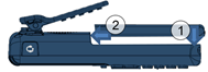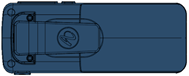 Als de riemclip bevestigd is, dient u deze op te tillen en in deze positie te houden tijdens het aanbrengen of vervangen van de batterij. |