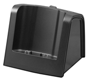El cargador doble sirve para cargar el terminal y una batería de repuesto en un escritorio.