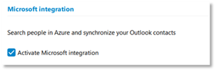 Activate/deactivate Microsoft® integration. If you activate Microsoft® integration, your Microsoft® Outlook/Azure credentials will be requested. |
