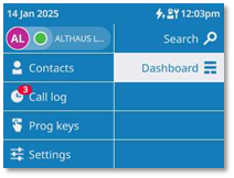 You can use the app bar displayed on the dashboard to open the desired feature directly. The app bar is only available on the ALE-500 or ALE-400 Enterprise DeskPhone.