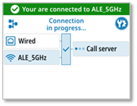 如果桌面话机未连接到以太网,WLAN 向导会自动启动 (桌面话机可以由 PoE 供电,但不能连接到以太网)。 ALE Link 页面会自动显示。 启动 WLAN 向导,方式是选择: 无线。 |