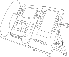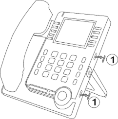· Use the add-on support to fix it to the desk phone using the provided screw. Remove the foot of the deskphone if you have difficulty accessing the screw.