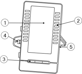 Phone capabilities can be extended with Add-ons. The EM200 add-on module offers up to 120 additional LED keys. There are 2 x 10 programmable LED keys for each virtual page. The EM200 add-on module offers up to 60 additional LED keys. The EM200 can display up to 3 virtual pages (one or three virtual pages).